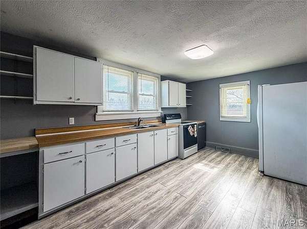 Welcome home to this charming property in the heart of De Soto! From the moment you arrive, you’ll be greeted by two beautiful maple trees that frame the walkway leading to the front door, creating a warm and inviting first impression. Relax on the covered front porch while enjoying the peaceful sounds of birds and your morning coffee. In the backyard, you’ll find a large cleared space perfect for dogs, gardening, or even creating your own mini orchard. The back patio offers a great place to unwind or entertain while overlooking the spacious yard. Inside, the home features three beautiful bedrooms, a spacious kitchen, and a large walkout basement offering additional potential and storage space. Recent updates include fresh paint throughout and new flooring in the hallway, laundry room, and kitchen.