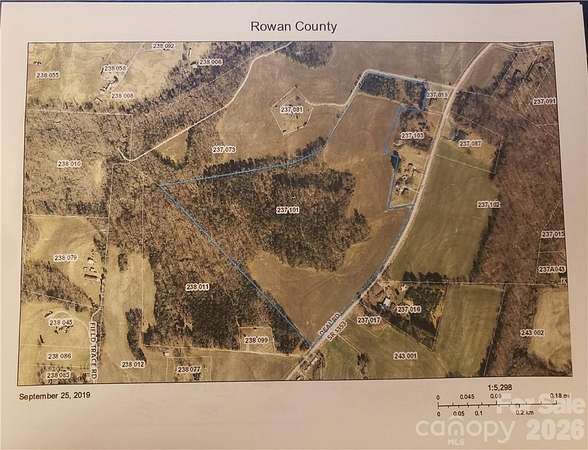 Excellent development opportunity or private residence tract in Mooresville in Rowan County with a total of 49.31 acres. There is approximately 1400 ft +/- paved road frontage on Deal Road. There are 2 streams on the property. A portion of the property is cleared and the other portion is wooded. (Subdivisions of more than 7 homes will need to contact the Zoning Dept of Rowan County to get approval.) Per Rowan County Zoning, single family parcels must be at least 40,000 square feet in area for this parcel due to being in watershed II Coddle Creek. See email from Rowan County Zoning Dept in the property attachments. Wooded areas feature large Pines and Poplar trees that are over 100 years old, per County Ranger. Survey and Aerial and Contour Map are attached. Less than 15 minute drive to either Kannapolis Parkway, downtown China Grove or downtown Mooresville.