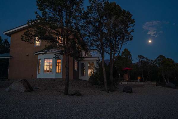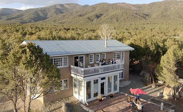 Retreat to your Retreat! This beautifully maintained 10.80-acre mountain property offers a rare blend of peace, privacy, and versatility- it's the perfect mountain retreat close to the Town of Taos and world-class outdoor recreation. There are two parcels, two well services and the ability to divide or expand. There is currently a two story main house, a one bedroom guesthouse, a large workshop building and a stable with corrals. The light-filled 2 bed, 2 bath main home is open and airy. The main level features an open kitchen and living space, complete with a wood-burning stove for those cozy winter evenings. The upper level features another bedroom and bath, bonus space for hobbies and an upper deck that delivers breathtaking, expansive views in every direction-sunrises, sunsets, and stargazing are all front-row experiences here. A separate 1 bed, 1 bath guest house adds even more value-perfect for visitors, rental income, or a private studio or office. It has a great kitchen with a commercial oven/range, a steam shower, excellent storage, a private entry and large windows that flood the space with light through the trees. The additional large quonset workshop, previously used for metal fabrication, holds endless potential for creatives, craftsmen, or anyone in need of functional space. It has plumbing and electric. With two separate access points, the property is ideal for trailers, RVs, or horse rigs. A true horse-friendly property featuring a stable, tack room and corral, with plenty of room to roam and close proximity to the Carson National Forest for riding and recreation. And when it's time to adventure further, you're just a short drive from Taos Ski Valley and the Rio Grande-offering world-class skiing, whitewater rafting, and trout fishing. The land has been carefully maintained and manicured to meet Firewise standards, combining natural beauty with added safety and peace of mind.