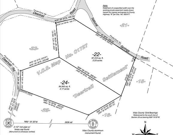Hwy M North of Boulder Junction. Go straight into Natural Lakes. Stay right on Deer Trail to properties on right at intersection with Natural Springs Road.