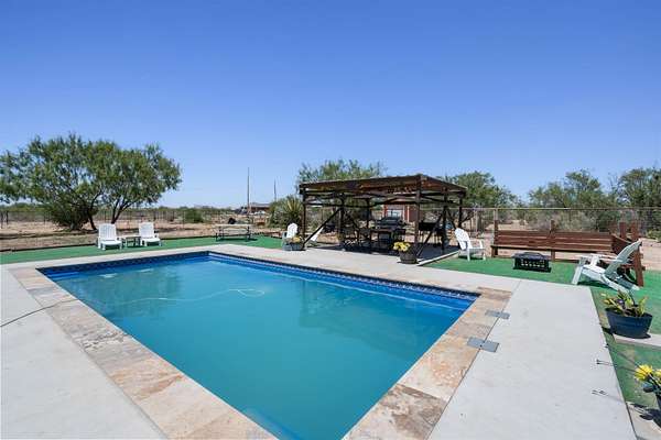 - Barn/Stables, Covered Patio, Fence, In Ground Pool