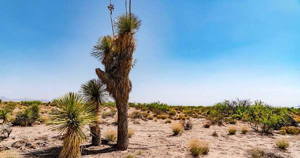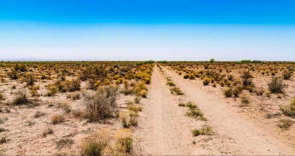 This 0.50-acre parcel is located on Camino Nueve in Deming, New Mexico. The land is mostly level with sandy soil and natural desert vegetation, including yucca and cactus. The surrounding area is open desert with distant mountain views and long sightlines across the landscape. Access to the property is provided by a dirt road that is visible and drivable.