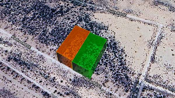 The property is one full acre in Luna County, New Mexico, with two 0.54-acre lots side by side. It features flat terrain with no flood zone concerns and offers mountain views from both lots.