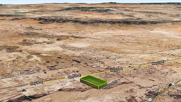 The land features direct paved road access requiring no off-road vehicle, beautiful mountain views from the property, totally flat terrain perfect for building, and power lines nearby ready for development or off-grid solar setup.