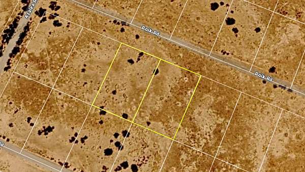 Each lot measures 0.54 acres sitting side by side, giving you a combined 1.08 acres of connected, usable ground accessible via Polk Road. The road surface is unpaved dirt, and the property has no fencing surrounding it.
