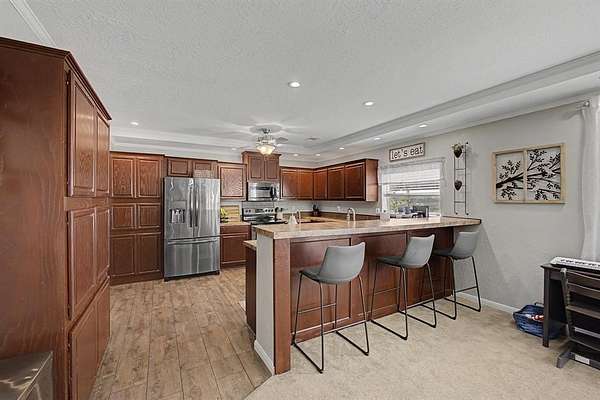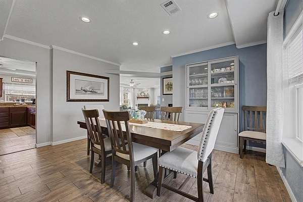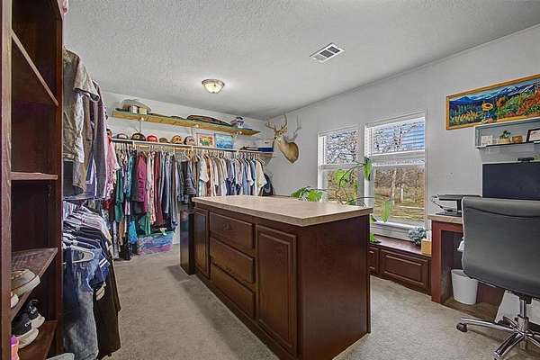 The home is generously sized with 4 bedrooms and 2 full bathrooms, offering plenty of square footage to live comfortably. The kitchen is spacious with ample room for cooking, gathering, and entertaining. The primary suite is a standout feature with a large bathroom that includes a soaking tub, separate shower, and plenty of room to move around. The oversized primary closet is impressive, complete with built in storage and a buffet style cabinet that adds both function and character.
