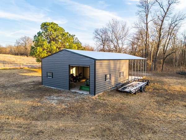 Tucked between Depew and Stroud in Creek County, Oklahoma, this 40 +- acre recreational tract delivers everything you want in a well-rounded hunting property with room to build and grow. From the moment you arrive, two gated entrances and road frontage provide convenient access, while a newer metal shop building with two roll-up doors sits right near the entrance-perfect for storing equipment, working on projects, or staging hunting gear. An additional metal shed offers even more covered storage space. The land itself is fully fenced and features a balanced mix of open pasture and thick timber strips that create ideal wildlife habitat. A large stocked pond offers excellent fishing and serves as a strong water source, while two wet-weather creeks wind through the timbered sections, enhancing wildlife movement and creating natural travel corridors. With established blinds and multiple feeders already in place (which will convey), this property is set up and ready for hunting. The diverse habitat, natural funnels, water sources, and ample locations for food plots make it a prime setup for deer, turkey, hogs, and even ducks. Beyond recreation, this tract also lends itself well to country living or a manageable ranch setup. With four separate power hookup locations on the property, you have flexibility to add a home, hunting cabin, or multiple structures. The open pasture areas could easily support a few head of livestock, while still maintaining plenty of space for outdoor enjoyment. Select equipment-including a John Deere tractor with implements, a mower, and two four-wheelers-can be negotiated with the sale, adding immediate value and functionality. Conveniently located just 9 +- minutes from Stroud, approximately 55 +- minutes from the Tulsa International Airport, and about 1 hour from Oklahoma City, this property offers seclusion without sacrificing accessibility. Whether you're looking for a turn-key hunting property, a future homesite with acreage, or a versatile country retreat, this tract provides the land, improvements, and setup to make it happen. All showings are by appointment only. If you would like more information or would like to schedule a private viewing please contact Hunter Bellis at (539) 238-7693 . Disclaimer: The boundary lines shown are approximate and are provided for general reference only. Arrowhead Land Company makes no representations or warranties, express or implied, as to the accuracy, completeness, or reliability of those property lines. Buyers are advised to obtain an independent survey to verify exact property boundaries.