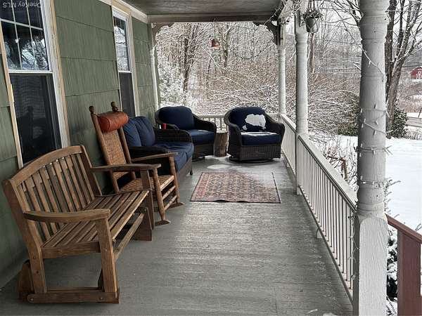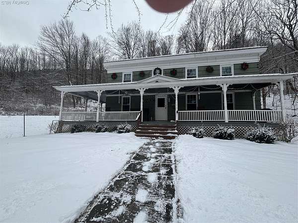 Spring is right around the corner River Front! Fisherman's Dream!! Welcome to the West Branch of the Delaware River, Renovated Farmhouse in Deposit, NY. Just 2.5 hours to the GWB. Immerse yourself in this Charming total renovated turnkey Farmhouse with Modern comforts and Rustic Elegance. Low Taxes!! Zillow approximation is wrong taxes are $3600 for the year.. Step into country living at its finest with this beautifully renovated farmhouse that blends timeless character with modern updates. Set on 14.3 acres. Almost 4 acres on the river side with almost 200 feet of river frontage and 11 acres on the house side. Large Pond on property next to the large Barn, 3/4 bedrooms have been freshly painted and new hardwood flooring, Laundry room with closet and full bath on 1st floor. Parlor can be used as another bedroom with pocket doors, Large Primary suite with office or nursery, large walk up attic, large living room, Dining room, new bath, with stand alone large porcelain tub, kitchen updated and painted, custom made butcher block countertops with farm sink with new faucet. electrical work, plumbing up grades, new windows, 3 mini splits with a/c and heat, Metal roof on house and barns. House has been power washed, 5 barns three larger two stories, and two smaller with wood burning stove and electric and land line phone service. Garden beds, garden shed, swing under the maples trees that produce maple syrup, The river is well known for its scenic beauty and is particularly popular for fly fishing, offerings opportunities perfect for Air BNB, kayaking, canoeing, and so much more. No detail has been over looked, Enjoy peaceful mornings on the wrap around porch and cozy evenings by the outdoor fire pit. Whether you are looking for an Airbnb, weekend escape, family home, or hobby farm, this turnkey property offers the bet of both worlds-classic farmhouse style with the comfort and efficiency of modern upgrades.
