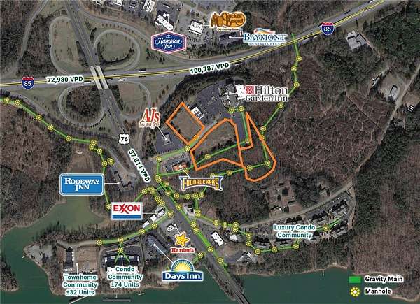 From North Main St, head towards Clemson on Hwy 76. Turn Right onto Destination Blvd, Land is on the right just passed Fuddruckers.