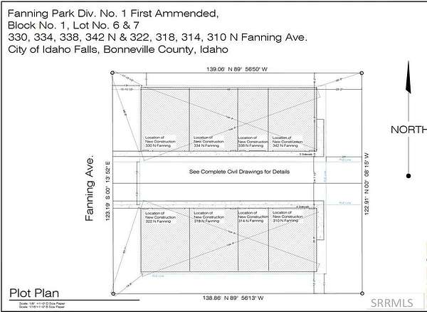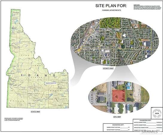 This prime development site has undergone full-scale excavation, positioning it as a ready-to-build opportunity for investors and builders alike. Significant groundwork has already been completed, including extensive underground utility installation. All major services have been professionally stubbed to the property, streamlining the construction process and reducing upfront development timelines. Additionally, a power pole carrying six lines has already been relocated to accommodate future construction, further minimizing delays and site constraints. The site is prepared for construction of two fourplex buildings totaling eight units. Plans include two distinct floor plan layouts, each offering either a single-car or two-car garage configuration. Addresses have already been assigned to each unit, simplifying permitting and future occupancy readiness and reducing administrative hurdles for builders and developers. Zoned R-3 high-density residential within Idaho Falls, this property supports multifamily development and aligns with the planned eight-unit build. With infrastructure in place and site work substantially complete, this parcel offers convenience, cost savings, and accelerated readiness for immediate development, making it an exceptional investment opportunity.