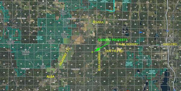 From Gaylord, Take M32 West to Alba Highway. Take a right on Devolder Rd. Take Devolder Rd until just before curve. The property will be on the left.