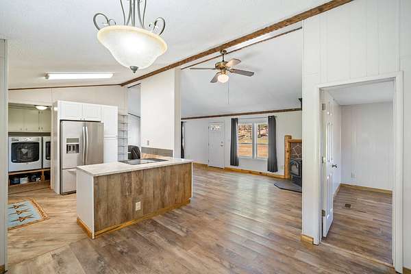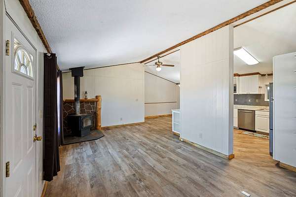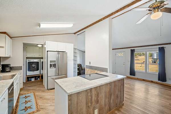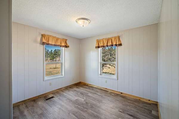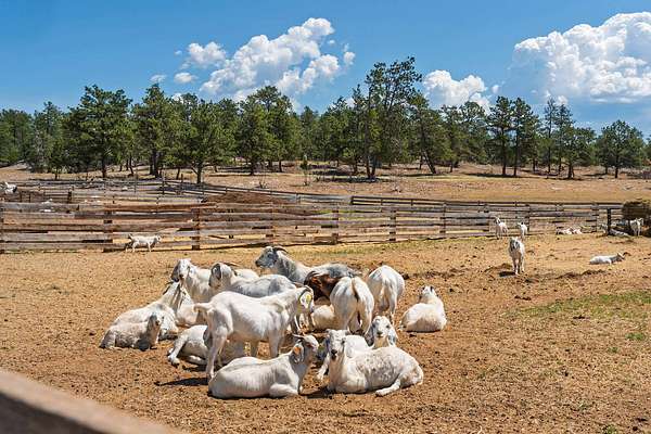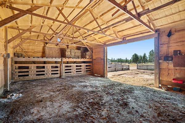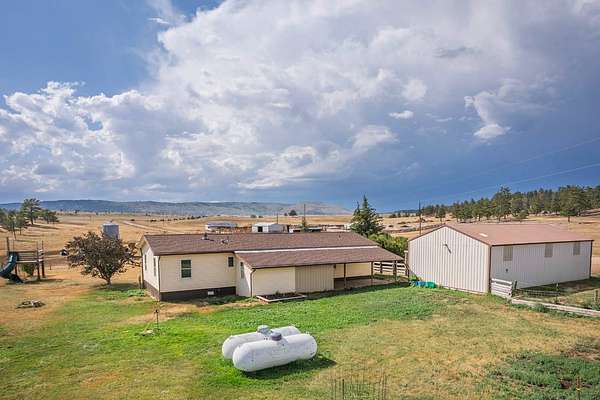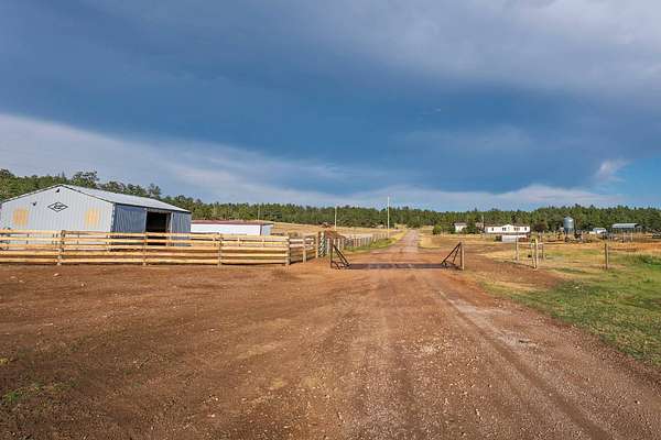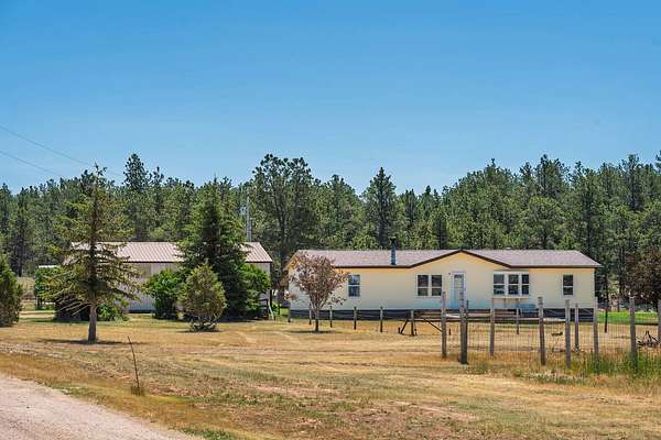 Set in the foothills near Elk Mountain, this 402-acre western South Dakota ranch features timbered hills, hay meadows, and open pastures. Located between Custer, SD, and Newcastle, WY, it is about an hour from Rapid City and just minutes from Black Hills National Forest lands, offering year-round recreation. The WELL- KEPT HOME offers three-bedrooms, 1.75-baths. 2015 remodeling includes new kitchen, updated main bath, laminate flooring, decking, windows, and roof. The manufactured home has 1,344 sq. ft., open floor plan, and large windows with Elk Mountain views. OUTBUILDINGS & OTHER IMPROVEMENTS: Additional improvements include a garage/shop, 24' x 42' insulated pole barn with 200-amp service, high-fenced hay stackyard, RV carport, RV hookup, chicken coop, fenced garden area, and wood plank corrals. PROPERTY HIGHLIGHTS: The ranch is fenced into five main pastures. Fields with 60 acres of hay ground, including 48 acres seeded to alfalfa/grass in 2023 and 12 acres in crested wheatgrass. Two water wells. This working ranch offers a good combination of quality infrastructure, convenient access, and proximity to Black Hills recreation. AN OPTIONAL 10-ACRE PARCEL with the residence, garage, barn, and one water well may be purchased separately.