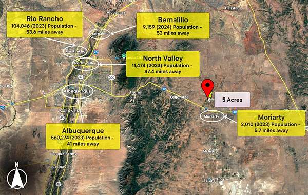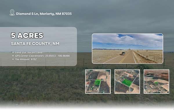 Discover the wide-open beauty of New Mexico on this 4.99-acre parcel located on Diamond S Lane in Moriarty. This spacious lot offers stunning views of the surrounding plains and distant mountain ranges, perfect for those seeking peace, privacy, and room to grow. Enjoy country living with plenty of space for a custom home, hobby farm, or weekend getaway--while still being just a short drive to I-40 for an easy commute to Albuquerque or Santa Fe. Power is nearby, and the land's level terrain makes building simple. Experience the tranquility of rural life and the charm of Moriarty from your own slice of high desert paradise.