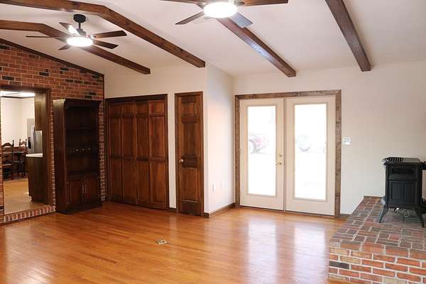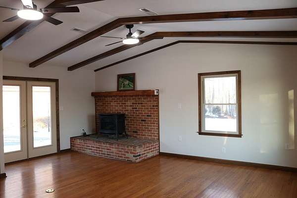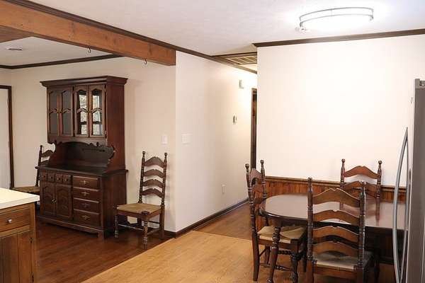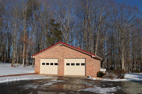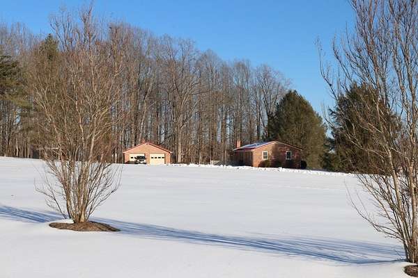 Cozy home with lots of road frontage on two state-maintained roads. Brick rancher built in 1973 and added onto in 1993. Main level offers living room with vaulted ceiling, bay window and hardwood floors. There is a second washer and dryer hookup on the main level, dining area and eat-in kitchen. All major appliances convey. Three bedrooms with hardwood floors. Full bathroom with newly added countertop and toilet. Full basement that offers recreational room with built-in cabinets, office/family room with huge walk-in closet and laundry room. Two car detached garage. Circular driveway. Two parcels total 3.07 acres+/-. New survey 2025. New roof 2022/2023. New appraisal January 2026. Turnkey and ready for a new owner!