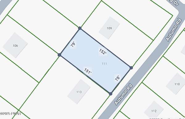 Once you turn onto Autumn road the lot is between house number 113 and 109