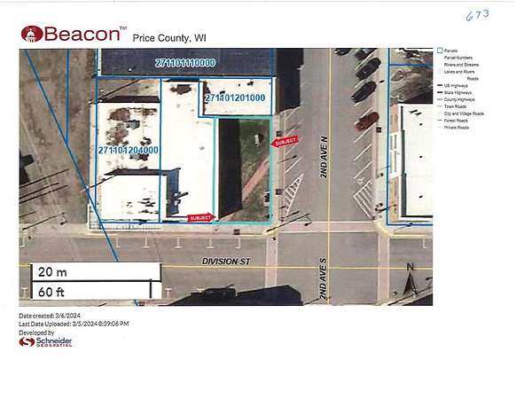 Est $120/mo(673/PR) Vacant city lot in the heart of downtown Park Falls. Located at the corner of Division St and 2nd Ave N, this 0.06 +/- acre lot has endless possibilities. Great foot traffic with local insurance, financial, healthcare, dental and retail businesses surrounding the parcel. Visibility from Hwy. 182 and only a short distance from Hwy. 13. $7,500 (E 39' of S 23' Lot 9 Blk 12, E 39' of Lot 12 Blk 13 Park Falls Lumber Co. Plat, 23-40N-1W)