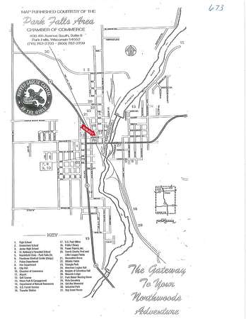 In Park Falls from Hwy. 13 head East on Division St. Property at corner of Division St. and 2nd Ave N.