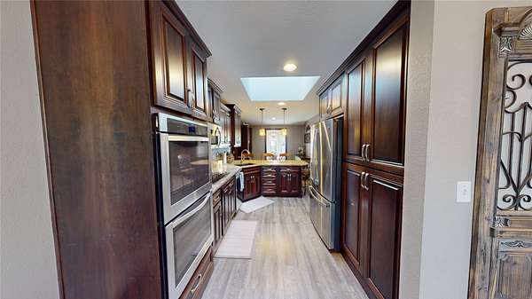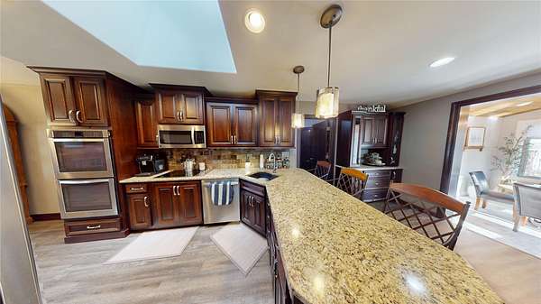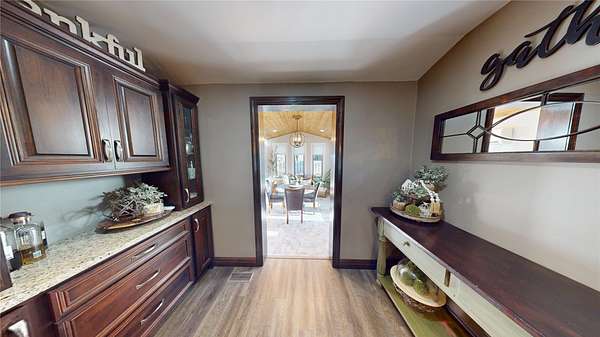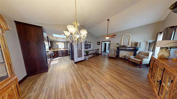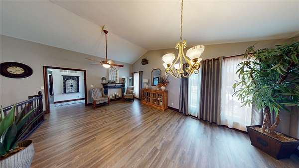 Country living at its finest with this tree lined, 5.7-acre property that features multiple-out buildings, corrals, and black top road access! This home has over 3,800 SF of total living space and has had multiple upgrades throughout. The main level has a formal living/dining rm, updated kitchen that is equipped with new cabinets, granite countertops, eating bar, and stainless-steel appliances. There is a sunroom with French doors to access the fenced in back yard and a family room with wood burning fireplace. The main level also features two guest bedrooms, main bath, and a primary suite with a walk-in closet, vanity, and updated bathroom. The basement has an additional family rm with fireplace, game room, optional room with closet, two bonus rooms with closets, and full bath. Outside you will find an additional 22'x27'storage bldg, 26'x12' dog run, 24'x40' utility bldg, and a 49'x12' loafing shed with multiple fences and corrals.