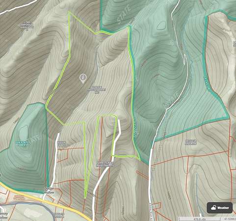Approx. 251 acres of raw, wooded land bordering ~11,000 acres of Elk State Forest along the Eastern boundary. Private and secluded with deeded 33' ROW access from Route 46 via Dodge Hollow Rd. Drivable access (dirt road takes you from botton to top of property) plus established trail system (former logging roads) throughout—ideal for ATV/UTV riding, hunting, and hiking. Stream runs through property (seasonal). Multiple areas offer beautiful views and potential camp/cabin sites. Abundant wildlife. No utilities on site. Electric available in the area; neighboring properties have electrical service. On-site well and septic would be required for water and sewer; buyer to verify feasibility, access, and permitting. No structures. Timber rights convey (seller estimates ~$150,000 value of mixed hardwoods). Oil, gas, and mineral rights reserved; property subject to existing lease.