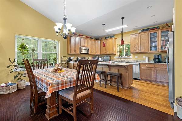 Nestled just a few minutes from the breathtaking Buffalo River, this stunning 3,000sq ft custom-built home (2015) offers the perfect blend of comfort, space, and scenic beauty. Step inside and be greeted by a spacious open-concept living area, featuring vaulted ceilings, rich hardwood floors, and a striking floor-to-ceiling stone fireplace - the perfect centerpiece for cozy gatherings. The heart of the home flows seamlessly into the dining area and a well-appointed kitchen, ideal for entertaining or enjoying quiet nights in. Natural light floods the space through large windows, bringing the beauty of the outdoors in. Step outside to your expansive covered deck - a peaceful haven for morning coffee, evening relaxation, or hosting friends with views of lush greenery all around. Downstairs, the fully finished basement offers even more flexible living space - perfect for a home gym, media room, game area, or multi-generational living. With ample room to spread out, this home fits a wide range of lifestyles.