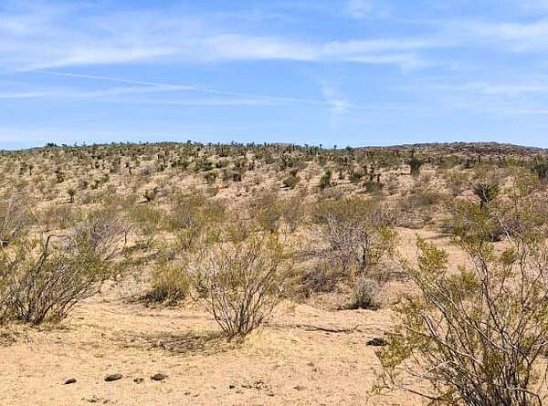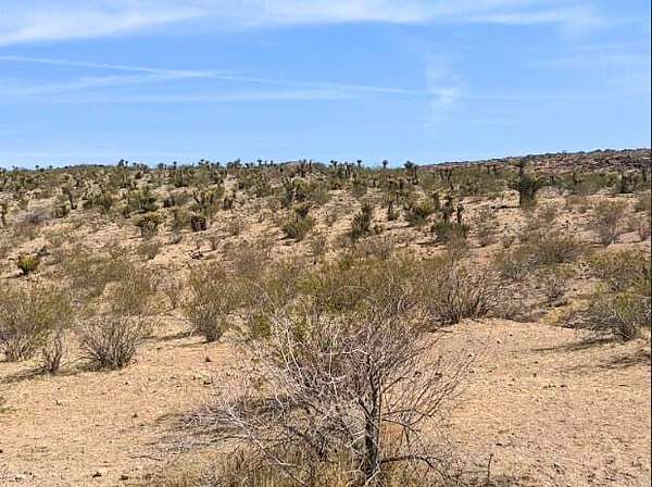 This 5-acre parcel is located in a high-desert area of Arizona, set between low hills and open desert terrain with Joshua trees and native vegetation. The land is mostly level with light slopes and desert brush throughout. Access is by dirt road, with the final few miles requiring a high-clearance or four-wheel-drive vehicle due to uneven surfaces and dense underbrush.