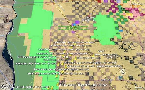 Stella Ranch, Dolan Spring, AZ. 4,000+ acres rich with Valuable Water Well Rights! Laughlin/Bullhead International Airport (34.1 miles / 54.9 kilometers) and Las Vegas Harry Reid International Airport (59.7 miles / 96.1 kilometers)Zoned Residential and Agricultural, minimum of 36 acres split. Unearth the treasures of Pilgrim Mine steeped in gold mining history, recharge your soul at the sparkling springs, where tranquil pond awaits your moments of reflection and makes for a secluded desert oasis. Active lease cattle grazing rights and equestrian property. Land has valuable water and electric for homestead, farming, trees, Lavender, Pistachio. But the possibilities don't stop there. Imagine creating your hilltop sanctuary with ample space for a helipad or even a private landing strip.