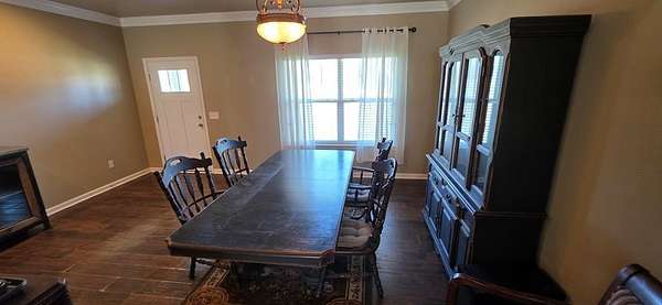 Beautiful 4 Bed 3 Bath Custom built all Brick Home on 7 Acres with a Creek in Rehobeth School District. This Home has 2670 Sqft with the Master bedroom, Large Laundry room and an extra fridge located on one end. The Master Bath has double vanities two walk in closets a Large tub and a separate shower. The remaining 3 bedrooms are on the opposite end of the home. The front of the 7 acre property is all open with a Hardwood Forest in the back surrounding the Creek Valley. An Awesome Trail system runs along the creek with several spots for entertaining and observation points along the way. Great potential pond site along the spring fed Creek. The covered back porch has a Tv and Bar area also great for entertaining. This property has a fire pit with seating and lighting behind the covered back porch bar area and a 14x36 ft heated and cooled additional building with a bar and Half Bath that could be a workshop or used for storage. Not in a Subdivision and No HOA! Located Just a few Mins from 231 South, a Dollar General Market, Gas Station and ANB Hardware and Outdoor Store.