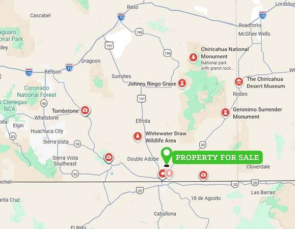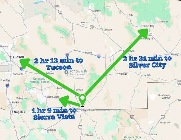 Located outside Douglas city limits under Cochise County jurisdiction, the property sits approximately 16 minutes from Douglas city center for grocery stores, restaurants, schools, and daily necessities. Sierra Vista is about 1 hour 10 minutes away for expanded medical services and shopping, while Tucson sits approximately 2 hours 30 minutes distant.