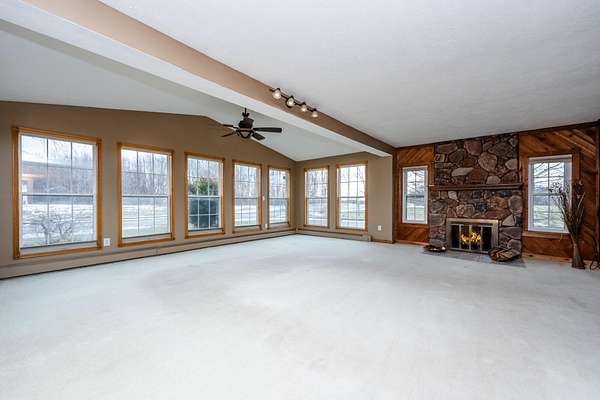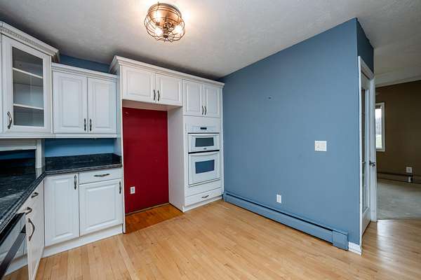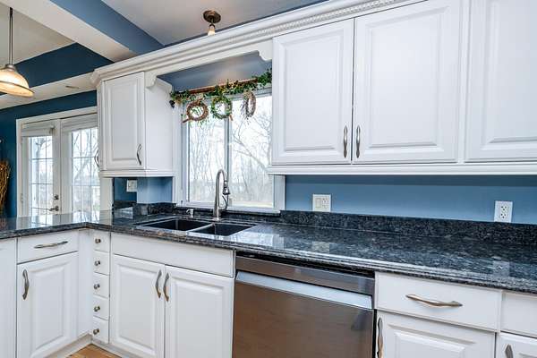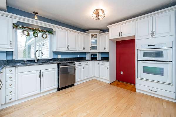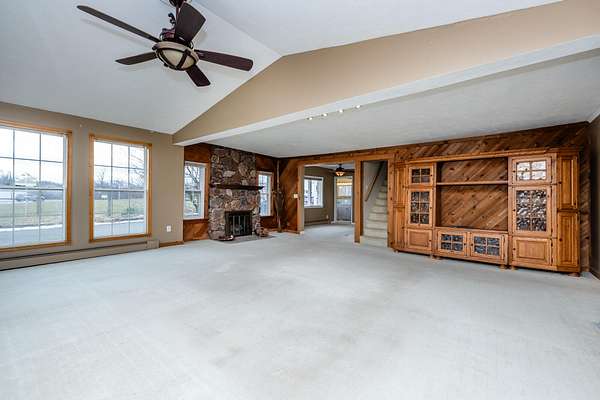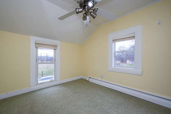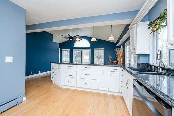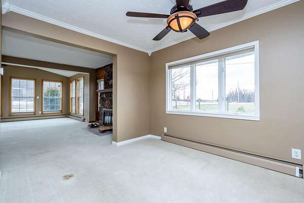 Set on over 1.5 acres, this well-maintained 3-bedroom, 1-bath property offers space, versatility, and thoughtful updates. Features include hardwood floors, main-floor laundry, a comfortable living room with gas fireplace, and an eat-in kitchen with granite countertops. Major mechanical updates include a roof, well, bladder tank, and furnace approximately 8 years old, along with a heating boiler installed approximately 6 years ago. The basement has been waterproofed, and the home is heated via boiler/hot water heat. Propane gas (rented tank). Additional updates completed in 2020 include a water softener, updated PEX plumbing, iron water filter, hot water tank, and an upgraded electrical service. A standout feature is the insulated 4+ car garage, ideal for vehicles, storage, hobbies, or workspace, along with an uninsulated area suitable for animals. The garage is complemented by two attached carports for additional covered parking. Zoned for both residential and commercial use, this property offers flexibility for a variety of residential or business needs. A rare opportunity to own acreage with valuable zoning options and extensive garage space.