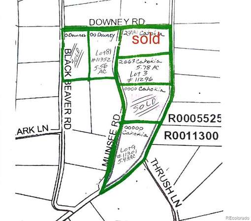 From Hartsel, head south on Hwy 9 for 7.4 miles, turn right on Comanche Trail, turn left on Cahokia Road, Turn right on Downey Rd, look for signs. This lot is at the corner of Downey Rd & Munsee Rd, (which is never used). The adjoining lot for sale is directly to the west, at the intersection of Downey Rd & Black Beaver. Please refer to the attached maps to understand which lots are where. It will make sense when you are standing there. Yes, Munsee Rd is a real road, just not used. The road sign might not be there but it will kind of look like a road. This does give you extra spacing between lots.