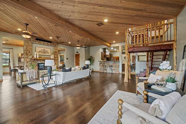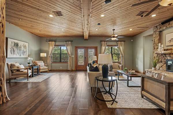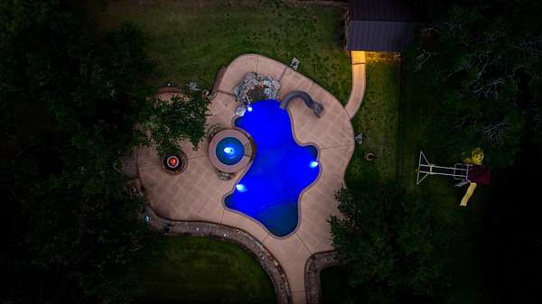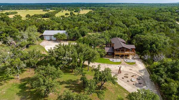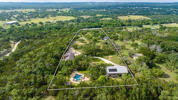 Welcome to 19507 FM 150 - a rare opportunity to own +/-6.95 acres of Hill Country charm and unrestricted versatility in highly sought-after Driftwood, TX. This private estate offers serenity, space, and prime access-just 10 min to Dripping Springs, 35 min to Downtown Austin, and about a mile from the exclusive Driftwood Golf & Ranch Club. With +/-260 ft of FM 150 frontage, the property offers direct access while remaining private under a canopy of mature Live Oaks. The 4,364+/- sq. ft. main home sits atop a gentle hill with beautiful views. It features 5 beds, 3 baths, and a pool/game room that can function as a 6th bedroom or office. The kitchen includes granite counters, built-in appliances, and a walk-in pantry. Throughout the home, enjoy cedar columns, natural rock, and warm wood accents. The primary suite includes porch access, a newly renovated spa-style bath with a freestanding tub, large shower, lighted vanity, and a spacious walk-in closet. The home is powered by a private well/septic system and a backup generator. Resort-style outdoor amenities include a pool with waterslide, rock waterfall grotto, spa, fire pit, pizza oven, pool house with bath, irrigated lawn, and a new chip-seal drive with ample parking. Additional improvements include a 2,400+/- sq. ft. concrete-walled barn with two oversized roll-up doors, full bath, office, and sauna. The 750+/- sq. ft. guest house features 2 beds, 1 bath, covered parking, and income potential. Also included is a separate +/-1-acre fenced commercial area with its own entrance, mobile office, private well/septic, and two baths-ideal for home-based businesses. Sellers are open to subdividing and selling the home + improvements on +/-5.95 acres without the commercial piece. Unrestricted and full of potential-ideal for private living, short-term rental, home business, or long-term investment.