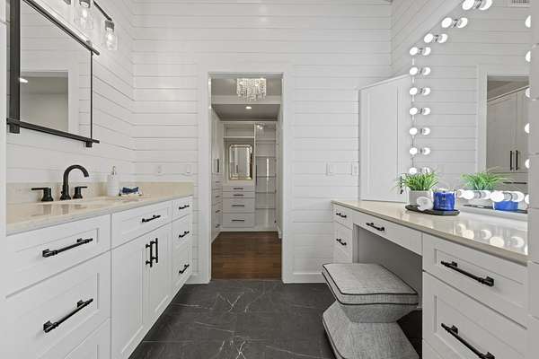 - Breakfast Bar, Built-In Features, Ceiling-High, Double Vanity, Granite Counters, Kitchen Island, Pantry, Smart Thermostat, Sound System, Two Primary Closets