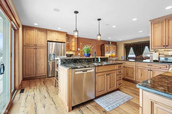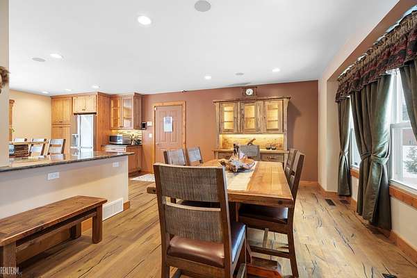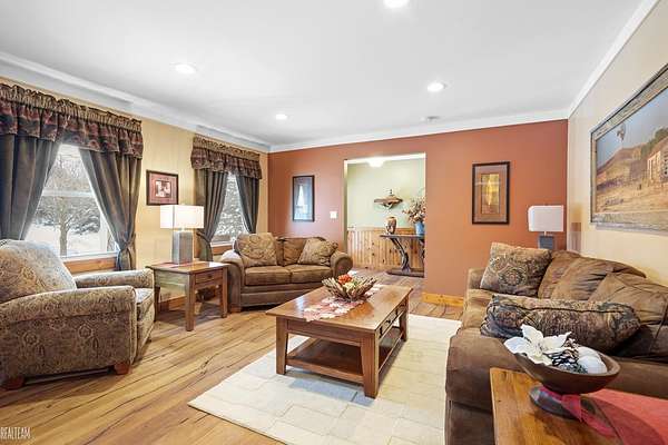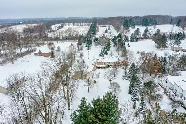 OPEN HOUSE SATURDAY, DECEMBER 13TH, FROM 12PM-2PM Charming ranch in Dryden set on just over 2.5 acres, offering serene country living with a warm cottage feel inside. Hardwood floors flow throughout the main level. The spacious living room leads into a well-appointed kitchen featuring abundant cabinet space, granite countertops, a breakfast bar, and a cozy dining nook. A large family room with a unique wood-accent ceiling provides an inviting space to relax or entertain. The primary bedroom includes a private en suite full bathroom. The finished walkout basement expands the living area with additional rooms perfect for an office, home gym, or hobby space. Outside, a pole barn with a loft offers excellent storage or workshop potential. This home blends comfort, character, and acreage--ready for its next owner to enjoy.