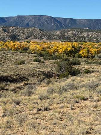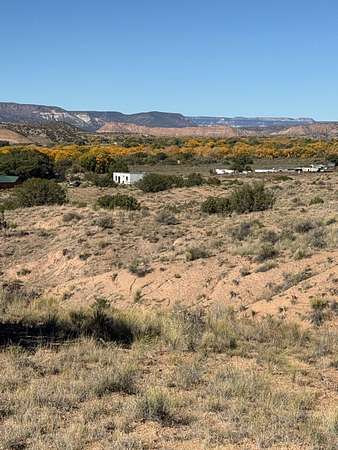 The 3 acre tract provides a few building spots, one that would probably be the one that you can spread out a bit. The views from this portion of the property are amazing, the Jemez Mountains to the south with the Chama River Valley in the foreground., Pedernal in the Distance, and several other mountains. The property is easy to get to as the access is not difficult and a good road. There is underground electricity close by, you have the option of having a water well drilled (there are several water wells in the area) or have water delivered. A septic system will be required and the soils look to be able to easily support leach lines. The property is close to the Chama River, the El Rito Creek, and up river is the Abiquiu Lake. There are public lands, BLM and National Forests close by. Old Covenants may apply, but there is no active HOA and the property will be reviewed by a local title company to determine if there are any covenants in force.