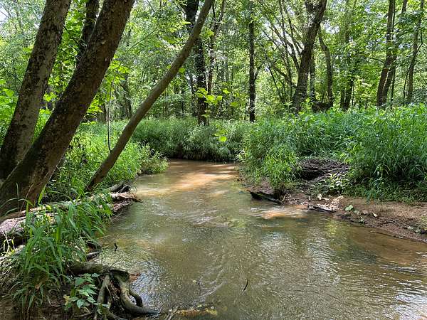 Habitat diversity is abundant across the landscape. Creek bottoms are wide and flat, and filled with mature hardwoods and river oat glades. Uplands are mostly gently rolling hills covered by a mix of thinned planted pines, mature hardwoods, small fields, and dense young forest regeneration. Steeper slopes overlook the creek bottom. Johnson Creek is a key feature of the land as it flows through the tract.