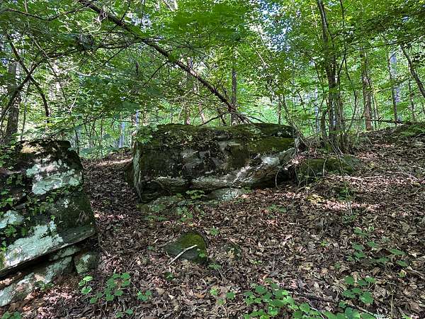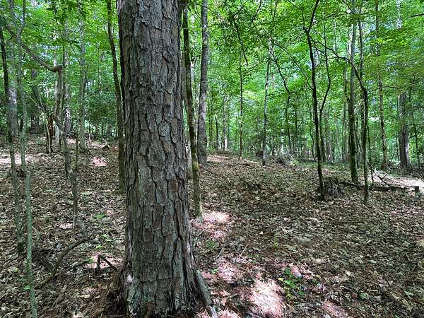 Closer to Johnson creek, the land is more strongly rolling. Hills are dominated by mature hardwood and white oak is abundant. On the south side of the tract and east of the creek, upland hardwood is mixed with mature loblolly pine. Red oak, maple and American beech shade rock outcrops along the hillsides which overlook the creek bottom. About 65 acres is covered by this mature hardwood with some pines.