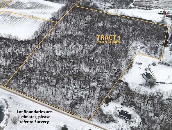 Live & Online LAND AUCTION - The RESERVE (Minimum Bid) is $8,000 Per Acre ($746,352). The bidding begins at 7:00 PM, Thursday March 5th, 2026. Live In-Person Auction Location: Table Rock Golf Club Restaurant (3005 Wilson Rd., Centerburg, OH 43011. BUYERS MUST SIGN ACKNOWLEDGEMENT OF TERMS to bid. Agents, please see 'A2A'. Tract 1 is a potential buildable home site containing 19.476 +/- acres with 562.99 feet of frontage and suitable depth for a rural homesite. 93.294 +/- acres located in Knox County, Ohio, being offered in a multi-parcel auction format with six total tracts ranging from 8.7 +/- acres to 26.9 +/- acres. This productive and well-maintained property features tillable acres, an abundance of wildlife, high-quality soils, and multiple potential building sites. This sale will be conducted as a multi-parcel auction, with all six tracts selling individually or in any combination. After the tracts are offered on an individual basis, the auctioneer will entertain subsequent rounds of bidding whereby buyers may combine tracts of their choosing at a higher bid value. Buyers may place bids on any individual tract, any combination of tracts, or the entire property as a whole, at any time until bidding is closed. The property will sell in the manner that produces the highest total price, subject to a combined reserve of $8,000 per acre. The seller will not pay any CAUV recoupment. Soil evaluations for Tracts 1,2,3,4,5, and 6 will be conducted on January 30th to determine the types of septic systems permitted on these potential home sites.