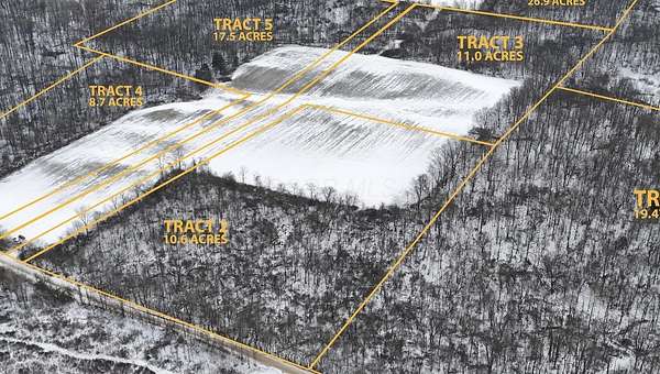 Live & Online LAND AUCTION - The RESERVE (Minimum Bid) is $8,000 Per Acre ($746,352). The bidding begins at 7:00 PM, Thursday March 5th, 2026. Live In-Person Auction Location: Table Rock Golf Club Restaurant (3005 Wilson Rd., Centerburg, OH 43011. BUYERS MUST SIGN ACKNOWLEDGEMENT OF TERMS to bid. Agents, please see 'A2A'. Tract 3 is a flag lot and potential buildable home site containing 11.0 +/- acres with 50 +/- feet of frontage and suitable depth for a rural homesite. If tract 3 is purchased separately, it will be part of a shared driveway easement between tracts 3,5 and 6. 93.294 +/- acres located in Knox County, Ohio, being offered in a multi-parcel auction format with six total tracts ranging from 8.7 +/- acres to 26.9 +/- acres. This productive and well-maintained property features tillable acres, an abundance of wildlife, high-quality soils, and multiple potential building sites. This sale will be conducted as a multi-parcel auction, with all six tracts selling individually or in any combination. After the tracts are offered on an individual basis, the auctioneer will entertain subsequent rounds of bidding whereby buyers may combine tracts of their choosing at a higher bid value. Buyers may place bids on any individual tract, any combination of tracts, or the entire property as a whole, at any time until bidding is closed. The property will sell in the manner that produces the highest total price, subject to a combined reserve of $8,000 per acre. The seller will not pay any CAUV recoupment. Soil evaluations for Tracts 1,2,3,4,5, and 6 will be conducted on January 30th to determine the types of septic systems permitted on these potential home sites.