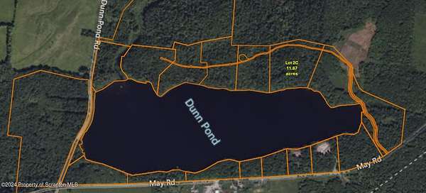 This 11.8-acre lakefront lot offers the perfect blend of privacy and natural beauty. The wooded property boasts breathtaking views of Dunn Lake and Sugarloaf Mountain, with 597 feet of private lake frontage on a stunning glacial lake. The level terrain allows for easy lake access, making it an ideal spot for your dream home where cherished memories can be created. Situated on a gated private lane with only seven lots, the property features a driveway leading to multiple home site options. Underground power is installed to the lot. Lots are for residential use and approved for micro mound septic. Short term and revolving rentals are not permitted.Dunn Lake, a pristine 102-acre lake with a depth of 36 feet, has never been developed before and offers unparalleled privacy with just 28 building lots. Initial phase is sold out. Motorboats are permitted, though jet skis are not, and no-wake hours from 7 PM-10 AM ensure peaceful mornings and evenings for fishing, paddling, or sunset cruises. Summers are perfect for boating, water skiing, and fishing, while winters offer skiing and snowboarding at Elk Mountain Ski Resort, just 15 minutes away. The nearby 38-mile D&H Rail-Trail is great for hiking, biking, and cross-country skiing, while the area also features nine golf courses, four state parks, and the Delaware River for world-class trout fishing. Conveniently located, the lake is 10 minutes to Forest City, 25 minutes to Honesdale, 35 minutes to Scranton and Binghamton, and under 2.5 hours from NYC and Philadelphia.
