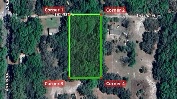 The property has legal access via SW 141st Pl, a maintained dirt/sand road just off the paved SR 200, with overhead power lines at the street. Well and septic systems are required, with setback guidelines and standard septic installation following percolation test. A1 zoning requires minimum 1,000 square foot structures and allows short-term rentals with proper licensing. Annual taxes are $247.24 with no HOA restrictions.
