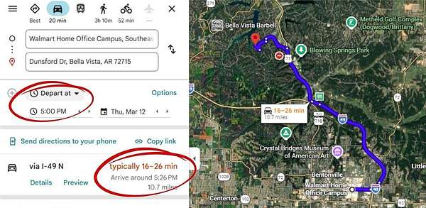 Follow I-49 to US-71 N in Bentonville, take exit 91 from I-49 N / Continue on US-71 N, take Riordan Rd to Dunsford Dr in Bella Vista