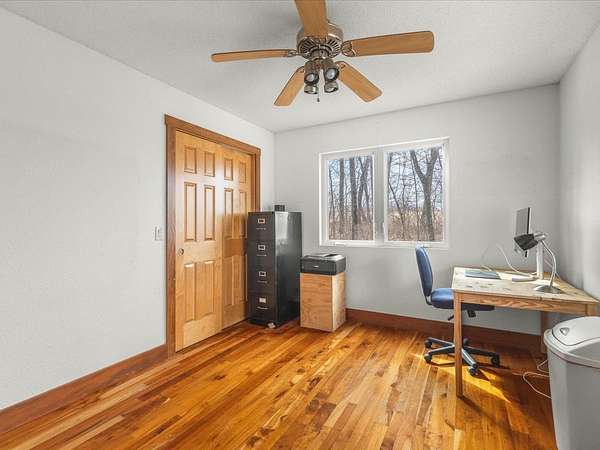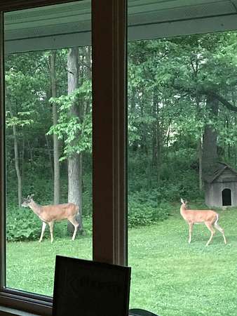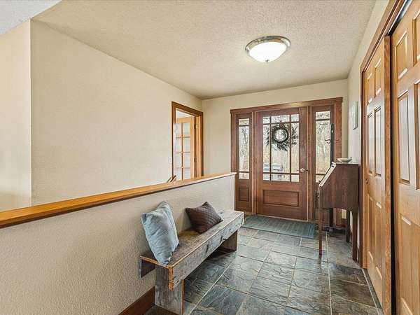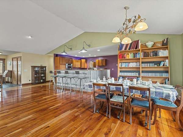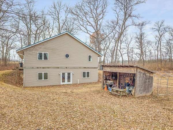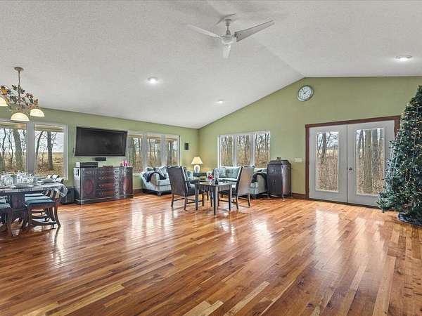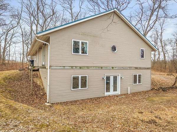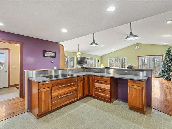 Nearly 10 ACRES of wooded privacy surround this spacious 2,400 sq ft home, offering the perfect blend of comfort and nature. The main level features beautiful HICKORY, MAPLE, and CHERRY wood flooring throughout, creating warmth and character in every room. The expansive kitchen is a standout with abundant CUSTOM, KRAFTMAID, CHERRY CABINETRY and plenty of space for cooking and gathering. It opens to a bright living and dining area with vaulted ceilings and walls of windows, bringing in natural light and showcasing peaceful views of the surrounding landscape. A large foyer with slate floors provides a beautiful entry into the home. Enjoy the comfort of RADIANT FLOOR HEATING on both the main and lower levels. The FULL, UNFINISHED, WALK-OUT LOWER LEVEL features 9-foot ceilings, a half bath (roughed in for a full bath), and is roughed in for a second kitchen, offering excellent potential for additional living space, guest quarters, or entertaining. The large primary suite includes a jetted tub, step-in shower, dual sinks, and a generous walk-in closet. A main floor laundry room adds everyday convenience. Outside, the property truly shines with mature woods, Concord grape vines, and abundant wildlife, including deer and turkey—perfect for those who appreciate nature and privacy. The home also features a maintenance-free steel roof, NEW cooktop (2025), and new dishwasher (2023). If you're looking for space, privacy, and a peaceful country setting, this property offers it all.