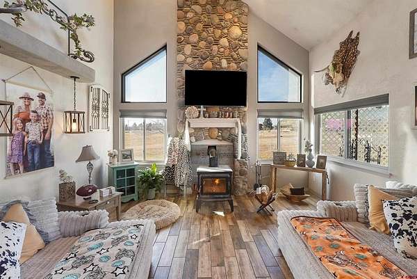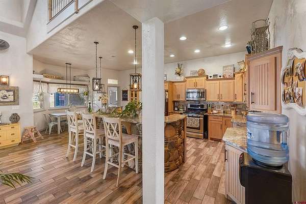 Rob Johnston, Keller Williams Realty Southwest Associates, LLC, C: 970-759-0444, rob.johnston@kw.com, www.rob-johnston.kw.com: This exceptional rustic-modern, two-story, 3,438 sq ft country-style house offers an open layout with 4 bedrooms and 3 1/2 bathrooms. The kitchen, dining, and living areas seamlessly blend together, featuring natural wood materials of wood plank tile and granite countertops. The kitchen island includes a raised bar section with seating with a stone backsplash, and solid light maple cabinets. A separate dining area, offset from the island, boasts two large windows offering natural light and breathtaking views of the La Plata Mountain Range. The kitchen is equipped with a large walk-in pantry, LG 5-burner range, spacious oven, side-by-side refrigerator/freezer, dishwasher, microwave, and a large recessed sink. The living room features a vaulted ceiling and large windows, along with glass sliding doors for unobstructed views and natural light, showcasing the surrounding scenery. Currently, the formal dining room is used as a relaxation area. The main level includes a large primary bedroom with a soaking tub, a walk-in tiled shower with a glass door, and a double sink vanity with a tiled countertop, and an additional bedroom and separate bathroom. A gentle staircase leads to the mezzanine on the second floor, which hosts 2 additional bedrooms, 1 bathroom, and an entertainment loft with hidden storage in the adjacent attic. The laundry room/mudroom includes a separate toilet and large wash sink, providing easy access from the barn to the home via the two-door garage. Covered porches at the front and back, alongside a concrete patio, offer ideal spaces for outdoor cooking, dining, and entertaining while enjoying mountain views. Irrigation is managed by the Florida Water Conservancy District, with water distributed from a main holding pond to each property owner. The 5-acre property includes a sprinkler system for the yard and hayfield, producing a fair yield of grass hay. The yard lawn resembles a golf course fairway. The property also features an unfinished 24 x 30 pole barn for hay storage and housing animals, with a separate fenced paddock, a greenhouse, and a chicken coop. This beautiful home is clean and well-maintained. Along with its equestrian and farm facilities, it is conveniently located near the hospital at Three Springs, downtown Durango, Bayfield, and Ignacio. Call today to schedule your personal showing!