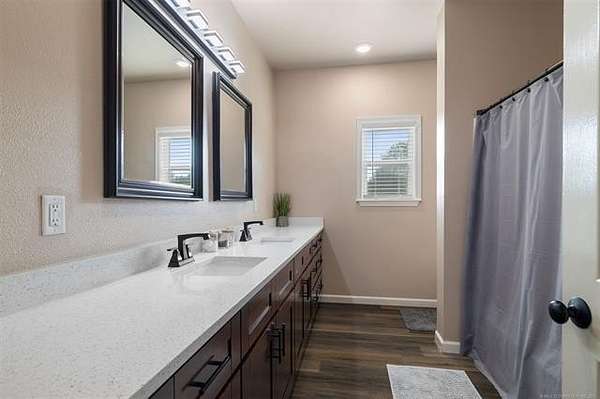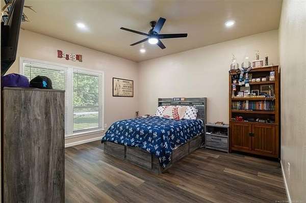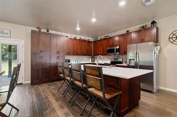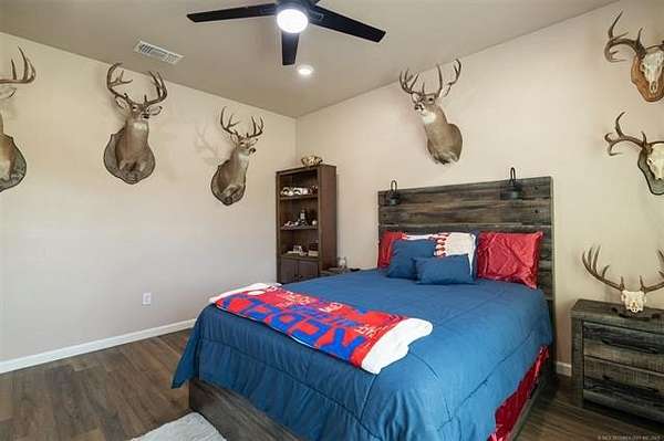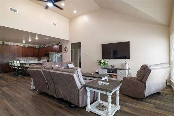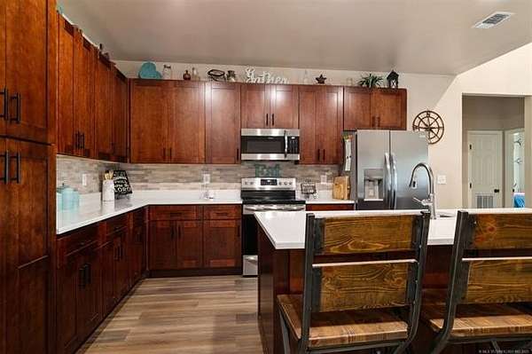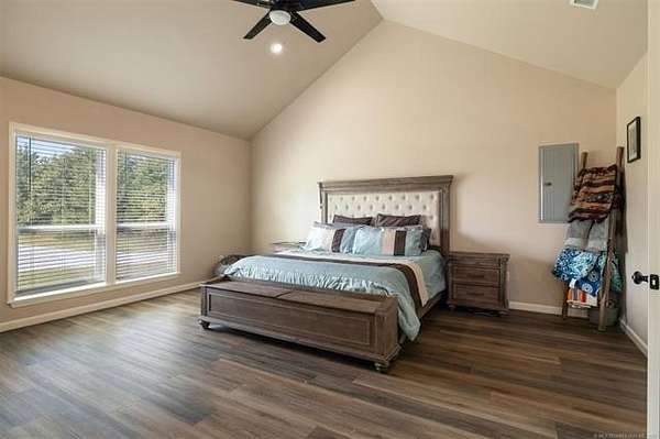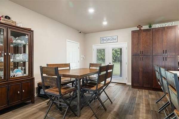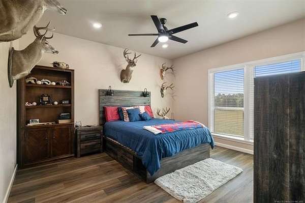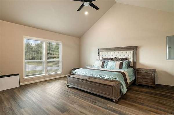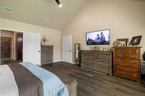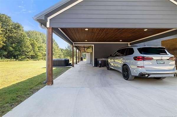 2180 church Road in Durant, Ok Country Modern Farmhouse on 9 Acres Tucked away in a peaceful, secluded setting, this country modern farmhouse combines timeless design with all the amenities today's buyers are searching for. With 3 spacious bedrooms in a split-floor plan, you'll enjoy both privacy and convenience, all under soaring vaulted ceilings that create an open and inviting atmosphere. Step inside and fall in love with the custom-stained cabinetry, quartz countertops, and thoughtfully designed kitchen that flows seamlessly into the main living area--perfect for hosting family and friends. The owner's suite offers a retreat of its own with a double sink vanity, tiled walk-in shower, and oversized walk-in closets. Outdoors, this property truly shines. A fully insulated shop with additional covered parking gives you room for projects, storage, or toys. After a long day, unwind in the private hot tub or envision adding a pool to create the ultimate backyard oasis. With 9 acres to call your own, you'll have the flexibility to clear trees for pasture, keep the wooded landscape for privacy, or simply enjoy the natural beauty of the seasonal creek winding through the property. This is more than a home--it's a lifestyle. Whether you're entertaining, relaxing, or exploring your land, this farmhouse delivers comfort, space, and endless possibilities.