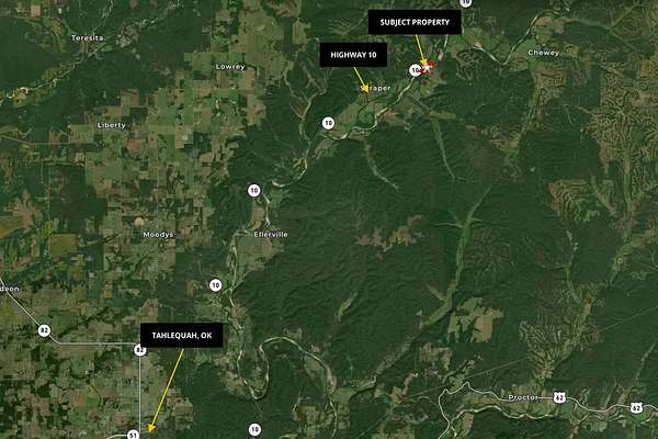 From Tahlequah: Head east on SH-51 and continue for 2.7 miles. Turn left onto SH-10 and continue north for 8.9 miles. Turn right onto N 569 Rd and in 0.9 miles, make a slight left onto N 563 rd, and continue north for 3.4 miles. Keep right onto N 563 Rd for 3.1 miles. Take a slight left turn onto D4595 rd and continue straight for 1.5 miles. Take a sharp left turn onto E 635 rd and contine west for 0.4 miles. Arrive at property entrance.