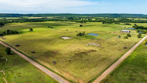 The Diamond T Ranch is a highly improved 496+- acre ranch located just 3 miles north of Warner, Oklahoma, offering an excellent setup for livestock operations, recreational use, and long-term investment. The property is thoughtfully designed for efficient rotational grazing and livestock handling with nine independent pastures, approximately four miles of interior cross fencing, three centrally located catch pens, and ten surface water ponds strategically distributed across the ranch. The ranch headquarters features a 60' x 100' pole barn with a built-in one bedroom, one bath studio apartment suitable for on-site living or office use, along with additional enclosed storage areas for feed, tack, or equipment, and an impressive 60' x 80' covered interior space that could be utilized as a riding arena, calving barn, livestock shelter, or equipment storage. Multiple holding pens are positioned on both sides of the barn for efficient livestock movement and handling. From an agricultural standpoint, the ranch is underlain primarily by Class II soils including Dennis Silt Loam, Choteau Loam, and Bates Loam, supporting productive pastureland dominated by Bermuda grass with pockets of fescue along the creek bottom that runs north to south through the property. From an investment perspective, the ranch offers approximately 2.7+- miles of road frontage on all four sides with rural water lines and overhead electric available along the north and west boundaries, providing excellent access, infrastructure, and long-term flexibility for future tract division or resale. The Diamond T Ranch is offered at $1,835,200, or $3,700 per acre, and is shown by appointment only.