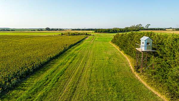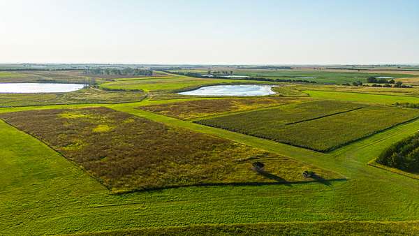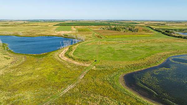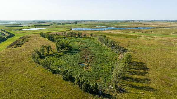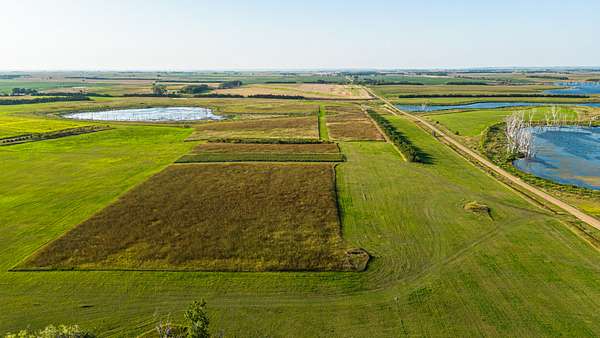 Multiple ponds and low-lying areas enhance waterfowl potential, especially during migration, while the surrounding cover supports healthy deer populations. Whitetails utilize the grass, shelter belts, and adjacent food sources, making this a highly versatile recreational tract.