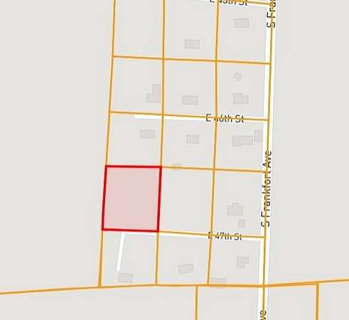 From Hwy 247 Turn North onto S Frankfurt, Turn left onto E. 47th St Last (3rd) 1 acre lot on the right at the end of the street.