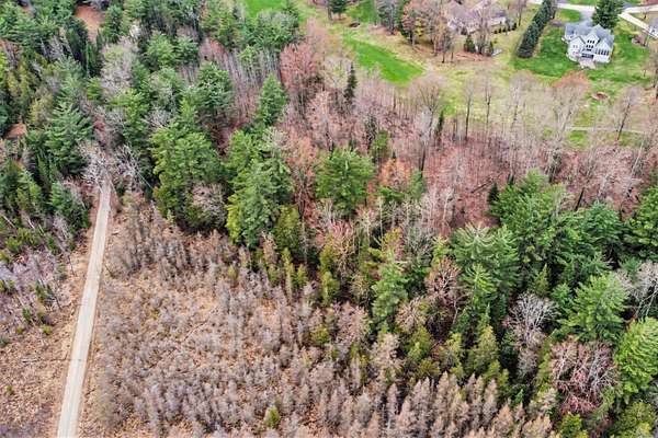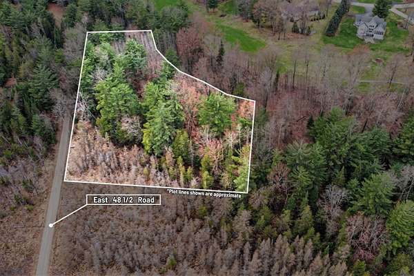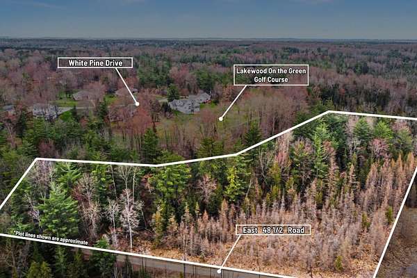 Positioned along East 48 1/2 Road in Cadillac, this 3.29-acre wooded parcel directly adjoins Lakewood on the Green Golf Course. With roughly 476 feet of public road frontage, the property provides an extended stretch of access along a quiet road while opening into a naturally wooded interior. The landscape is defined by a mix of mature trees and natural cover, creating a setting that feels private and consistent throughout the parcel. Bordering the golf course, the property benefits from a unique neighboring landscape that adds to the overall setting while maintaining separation through tree cover. The layout offers a balance of wooded surroundings and nearby open space, giving the land a distinctive character from front to back. Positioned in the Cadillac area, the location provides access to nearby lakes, recreation, and the broader Northern Michigan region while maintaining a more relaxed setting. Boundaries are shown for reference.