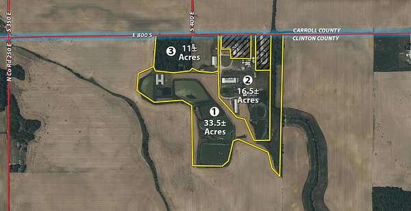 Total Acreage: 61 ac o SqFt: 1456 PROPERTY DESCRIPTION Don't miss this unique offering that includes a versatile mix of income-producing and recreational opportunities. Features include hog confinement buildings, three pole barns totaling 12,522 sq. ft. farm shop, a 1,456 sq. ft. home built in 2014, and wooded acreage. The property also includes nine lagoons-ideal for waterfowl hunting and wildlife habitat. Excellent potential for both livestock operation and hunting. Tract 1: 33.5+/- Individual List price of $335,000. A waterfowl hunter's paradise with 7 ponds that were previous lagoons that have been cleaned and hold a heavy flow of ducks and geese. Consider the potential of stocking the ponds with fish as well. This tract also includes one confinement building that could be converted for numerous recreational uses. Tract 2: 16.5+/- Individual List Price of $165,000 containing numerous outbuildings and confinement facilities. Consider the possibilities at hand with the immense amount of square footage available. Tract 3: 11+/- Individual List Price of $275,000. Includes the 1,456 sq. ft. potential home and several outbuildings with wooded acreage. PROPERTY LOCATION E 800 S, Frankfort, IN 4604